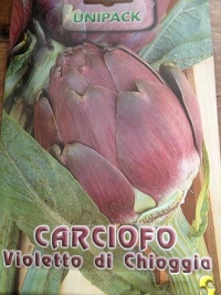 | Ordre : Asterales | | Famille : Astéracées | | Nom latin : Cynara Scolymus L | | Synonymes : Violetto di Sant Erasmo | | Description : meilleure variété pour manger crue, le Violet de Chioggia se présente sous forme de pommes allongée et pointue de couleur violet sombre, toute la tête et comestible, très tendre, croquante avec un léger arôme floral. Le plant d' artichaut à en moyenne une durée de vie de 4 à 5 ans. Il suffit d'en replanter à partir de la 3ème année à un autre endroit du jardin afin d'en récolter toutes les saisons.